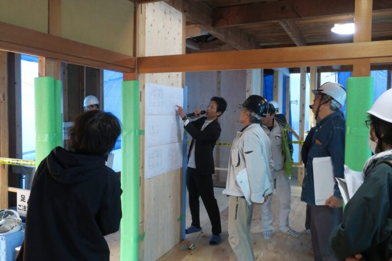 2025年12月6日(土)福井県さん・敦賀市さんで耐震改修現場見学会を開催されます! 公開済み: 2025年10月13日更新: 2025年10月13日作成者: hamadaカテゴリー: イベント情報, インフォメーション, ブログ, 新聞メディア掲載タグ: インスペクション, ホームインスペクション, リノベ, リノベーション, リフォーム, 住宅, 工務店, 敦賀, 福井県, 耐震改修, 耐震診断, 見学会, 設計 このたび、福井県さん・敦賀市さんからの強いご要請で、2022年、2023年に続き、 弊社、耐震改修設計・工事監理の敦賀市の伝統構法耐震改修現場で、 【伝統構法耐震改修現場見学会】を開催することになりました。 日時は、12月6日(土)午後、詳細は、決まり次第ご連絡させて頂きます。 写真は、2023年の時の写真(この時は、在来工法の耐震改修)ですが、2回に分けて30人ほど見学に来られました。